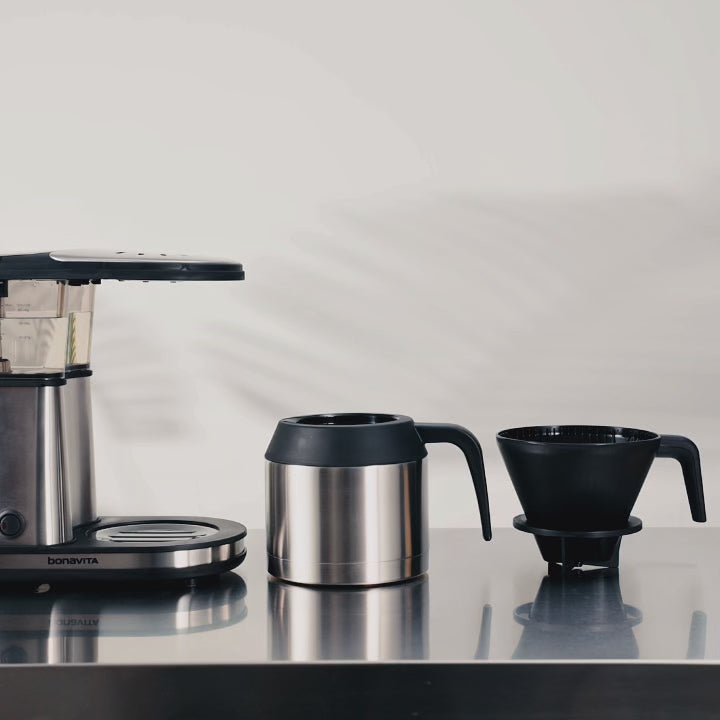 Bonavita’s shower head evenly disburses water over the coffee grounds, which properly infuses the ground coffee and, with optional pre-infusion mode, the pour-over brewing method gives the coffee grounds more brewing time so that it hits the perfect notes.